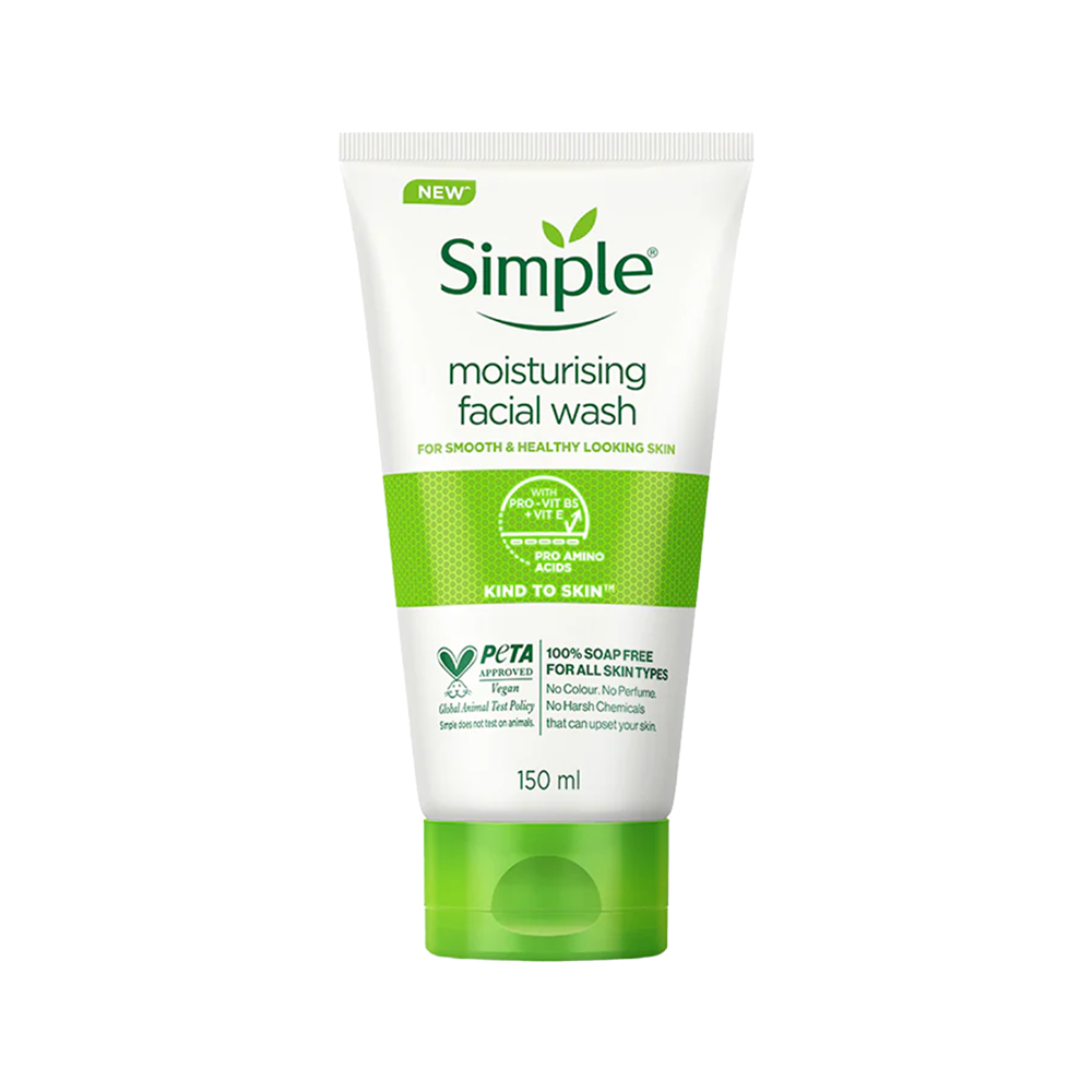 Simple Kind to Skin Moisturising Face Wash gently cleanses the skin, removing dirt, oil, and makeup without stripping away its natural moisture. Enriched with Pro-Vitamin B5 and Vitamin E, this hydrating formula nourishes and soothes the skin, leaving it feeling clean, soft, and refreshed. Free from artificial perfumes, dyes, and harsh chemicals, it is suitable for even the most sensitive skin types.