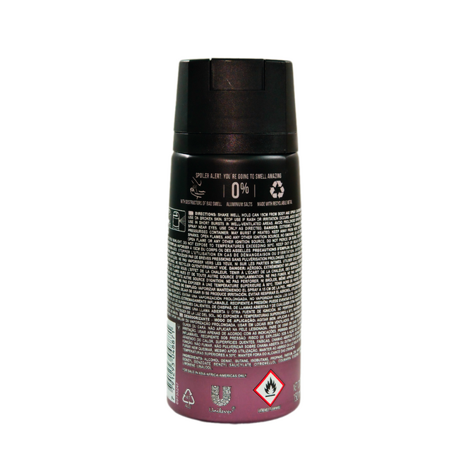 Black Night Aluminium Free Spray Deodorant AXE - Modern Men with Style and Sense of Essentials. With AXE Black Night, he's ready for the perfect evening and the challenges of the unexpected. The fragrance gives a unique aura that allows you to experience the magic of a special night. Unexpected events and experiences: stimulating, sensual, fascinating. The Axe Black Night deodorant combines effective body odor protection against body odor with one of the most interesting fragrances, developed by the world's leading perfume experts. It combines in its top note a mixture of cardamom, ginger root and grapefruit as well as pear. In the heart note, a warm touch of cashmere wood, orange blossom, chilli berries, lavender and geranium, complemented by shades of vanilla, tonka bean, amber and cedar.