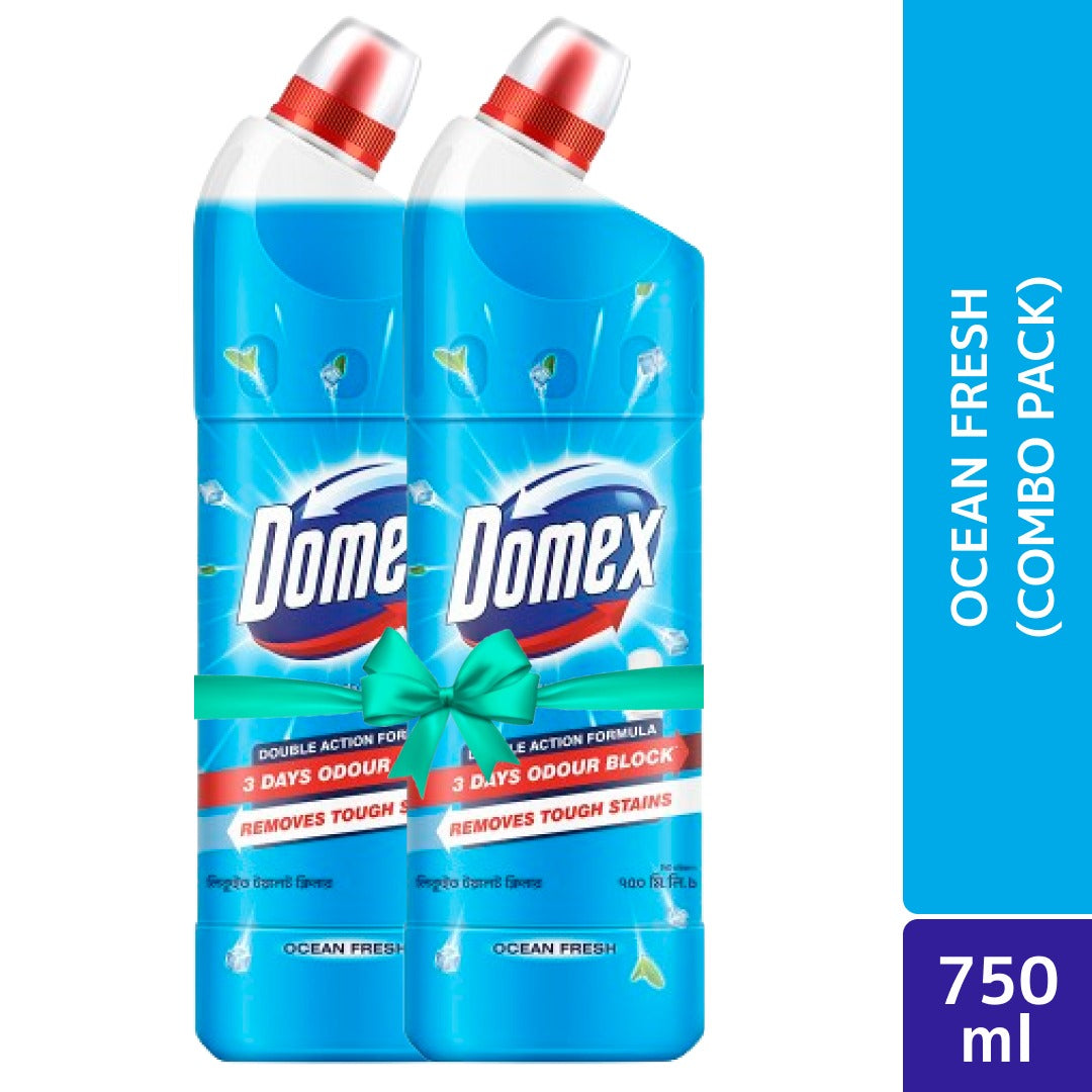 Domex Ocean Fresh is a powerful toilet cleaning liquid that Blocks Odour for 3 Days* and Removes Tough Stain. Its thick formula helps it spread across the toilet bowl and helps in effortless cleaning. Its unique colour changing technology turns the product from green to blue when in contact with water. Its powerful cleaning agents remove the toughest stains and provide germ protection. It’s 99.9% Germ-kill** formula makes it a quality disinfectant. To keep your toilet clean, disinfected, fresh, and safe, use Domex Fresh Guard Disinfectant Toilet Cleaner Liquid on a daily basis. Domex Toilet Cleaner comes in 2 variants - Ocean Fresh and Lime Fresh with distinct fragrance.