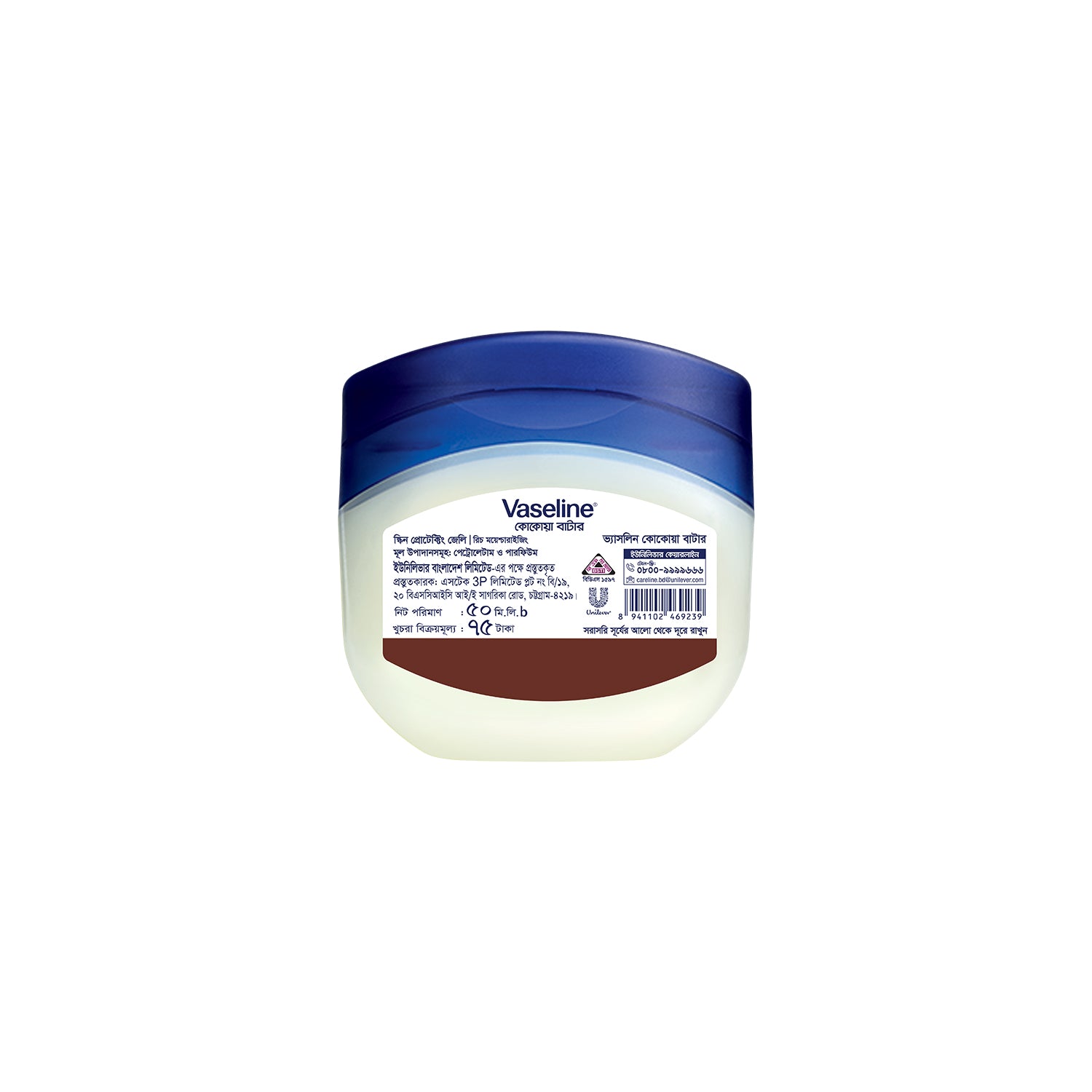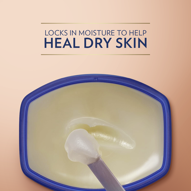 Vaseline® PURE PETROLEUM JELLY is the original wonder jelly. It works by creating a sealing barrier between cells, which locks in moisture and speeds up your skin’s natural recovery from dryness, helping it heal from within. Its occlusive function also allows it to protect dry, cracked skin and minor cuts, scrapes, and burns. Our jelly is triple-purified to be 100% pure