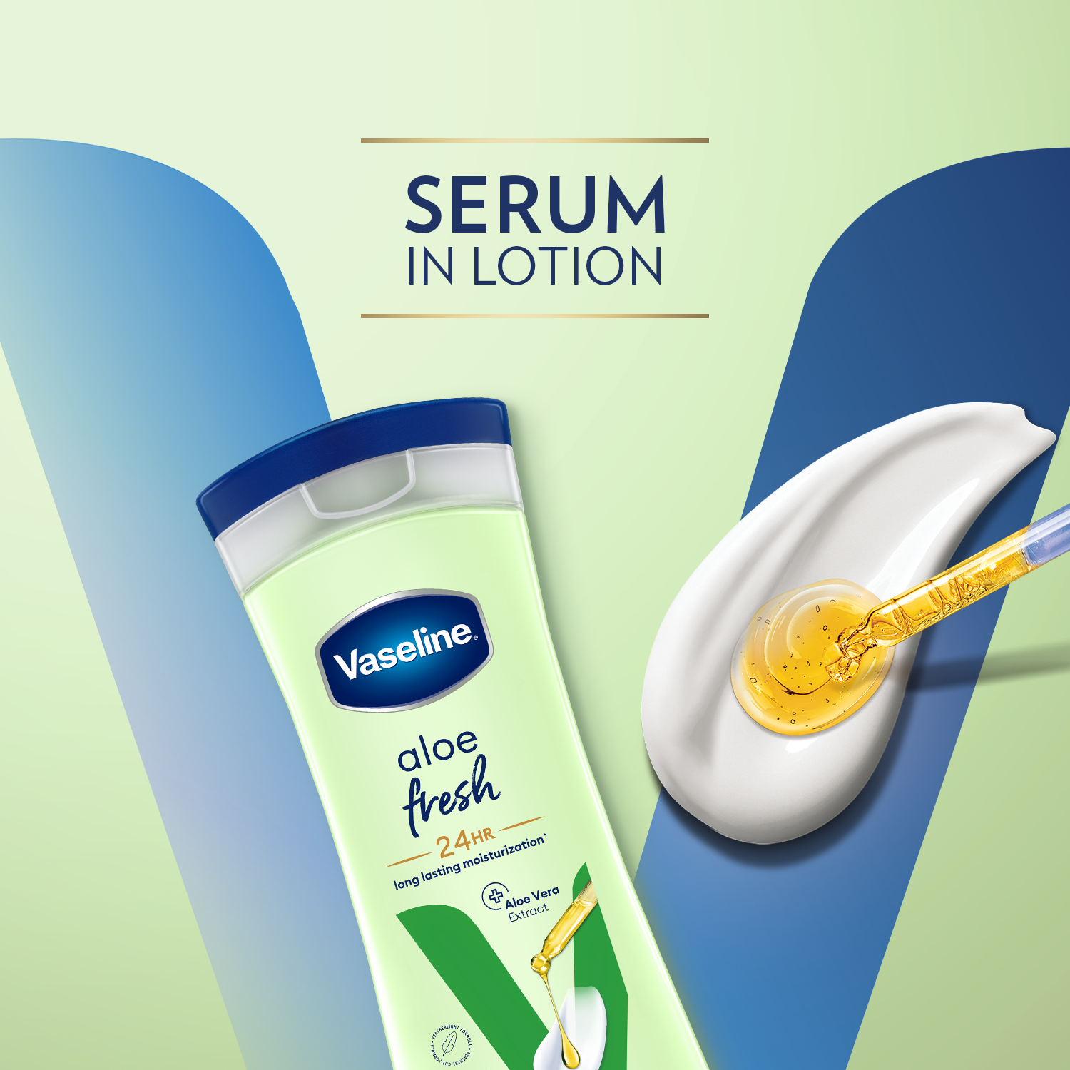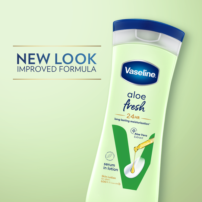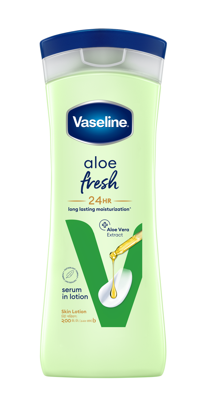 Body can lose upto half a litre of water everyday - leaving skin dehydrated. Dehydrated skin not only looks dull & unhealthy, but also becomes prone to skin infections due to external irritants. Vaseline® Intensive Care Aloe Fresh – with 100% pure aloe vera extracts & microdroplets of Vaseline jelly, restores skin’s moisture & helps maintain 24 hour hydration in skin. Aloe vera has long been used as a home ready to deal with dry flaky skin. It’s believed to have soothing properties to restore smooth supple skin and is effective at improving skin hydration. Aloe vera is an effective skin-conditioning which calms the skin and leaves it feeling deeply moisturized. The droplets of Vaseline® Jelly creates an extra layer of protection, preventing moisture from escaping and helping aid your skin’s natural recovery process. Vaseline Intensive Care Aloe Fresh lotion helps rejuvenates dry skin even in harsh summers. It is a light lotion, that absorbs fast for a non-greasy & non-sticky feel – to keep your skin soft, smooth & refreshed. It is best suited for summers. Incorporate the wonder benefits of aloe in your skin care regime with Vaseline® Intensive Care Aloe Soothe regularly can help your skin look and feel healthier.