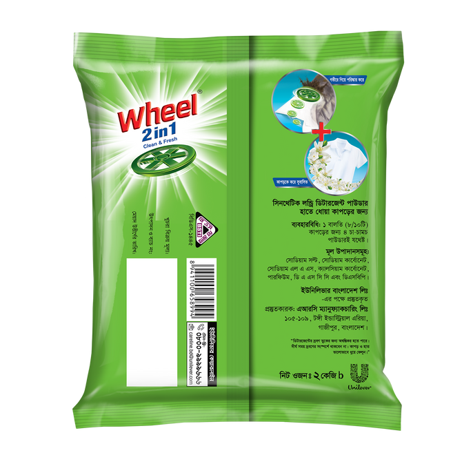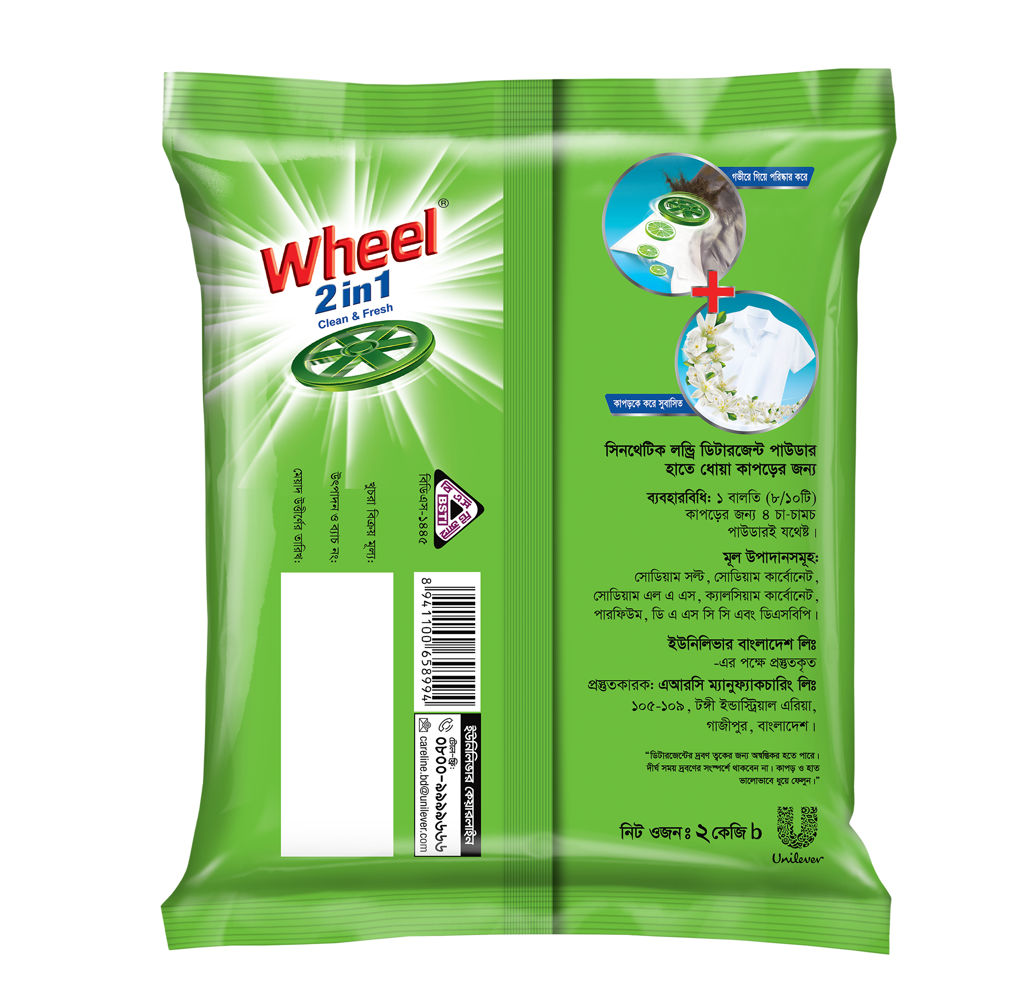 Wheel 2in1 Washing Powder cleans Clothes thoroughly removing all malodors. Its advanced white powder provides deep cleanliness & sensorial delight while allso being gentle on your hands. Available in two different variants, Clean & Fresh with odor masking capability & winning floral fragrance in Clean & fresh. Buy Now!