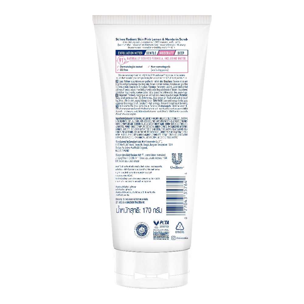 From America's #1 scrub brand, this delicious, citrusy scrub is infused with pink lemon and mandarin peel extract that polishes away little imperfections. The extracts from these vibrant, zingy fruits are famous for leaving skin brighter. When life gives you lemons, make a delicious citrusy scrub. Infused with pink lemons and mandarin orange peel, it has a moderate exfoliation level for radiant skin.