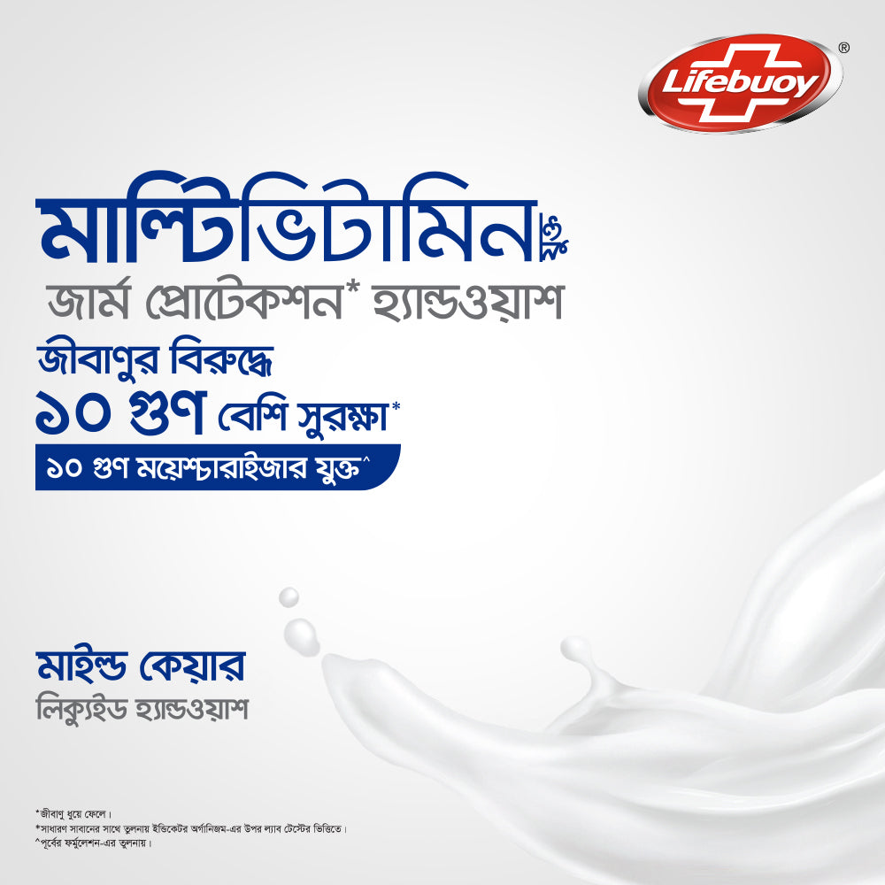 Hand washing with soap is the best way to avoid infections and keep your family healthy. However, ordinary soap may be harsh on skin and repeated hand washing may leave your hands dry and damaged. Your sensitive skin needs a cleanser that is tough on germs, but soft on your skin. That’s why we created Lifebuoy Mild Care Germ Protection Hand Wash Liquid. The goodness of Milk Cream leaves your hands feeling soft and healthy while protecting you from germs. So now stay one step ahead of infections, and keep your hands soft and healthy.