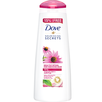 Dove borrowed this healthy ritual and created the new Healthy Ritual for Growing long Hair. Combined with the care of Dove, this shampoo can protect hair against daily damage instances like brushing, combing and, tangle-teasing. Our formula reduces hair breakage, hair fall, enabling it to grow beautifully long. The extracts of coneflower and white tea along with coconut oil, indulge your senses with fresh flowery notes while leaving your hair healthy looking and long.