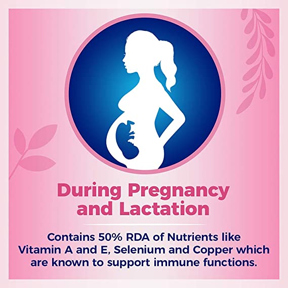 • Helps fulfill 100% of the daily requirements for Vitamin B2, Iron, and Folic Acid during lactation.