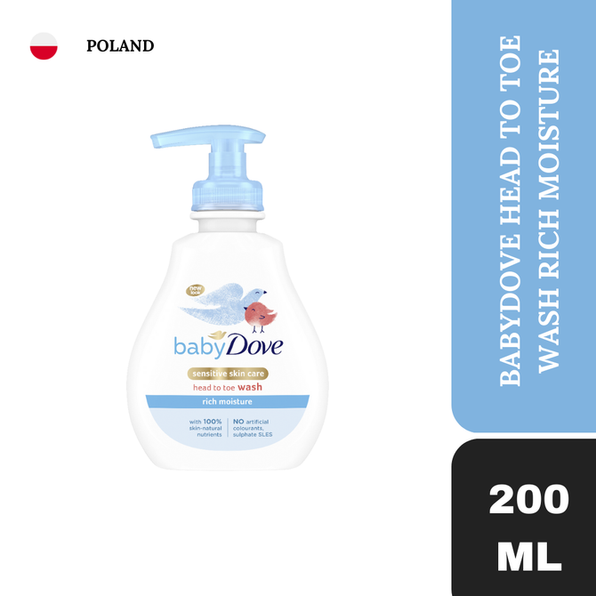 Baby Dove Rich Moisture Head to Toe Baby Wash is a moisturising, hypoallergenic baby body wash and shampoo. Bath time with your baby is special, so you want the best baby wash. We know that baby skin is delicate as it is still developing during the first few months and throughout the first year. But did you know that it’s actually 30% thinner than ours, making it more vulnerable to dryness? A baby’s skin barrier is also weaker as it’s developing, which means it loses moisture up to five times faster than our own.