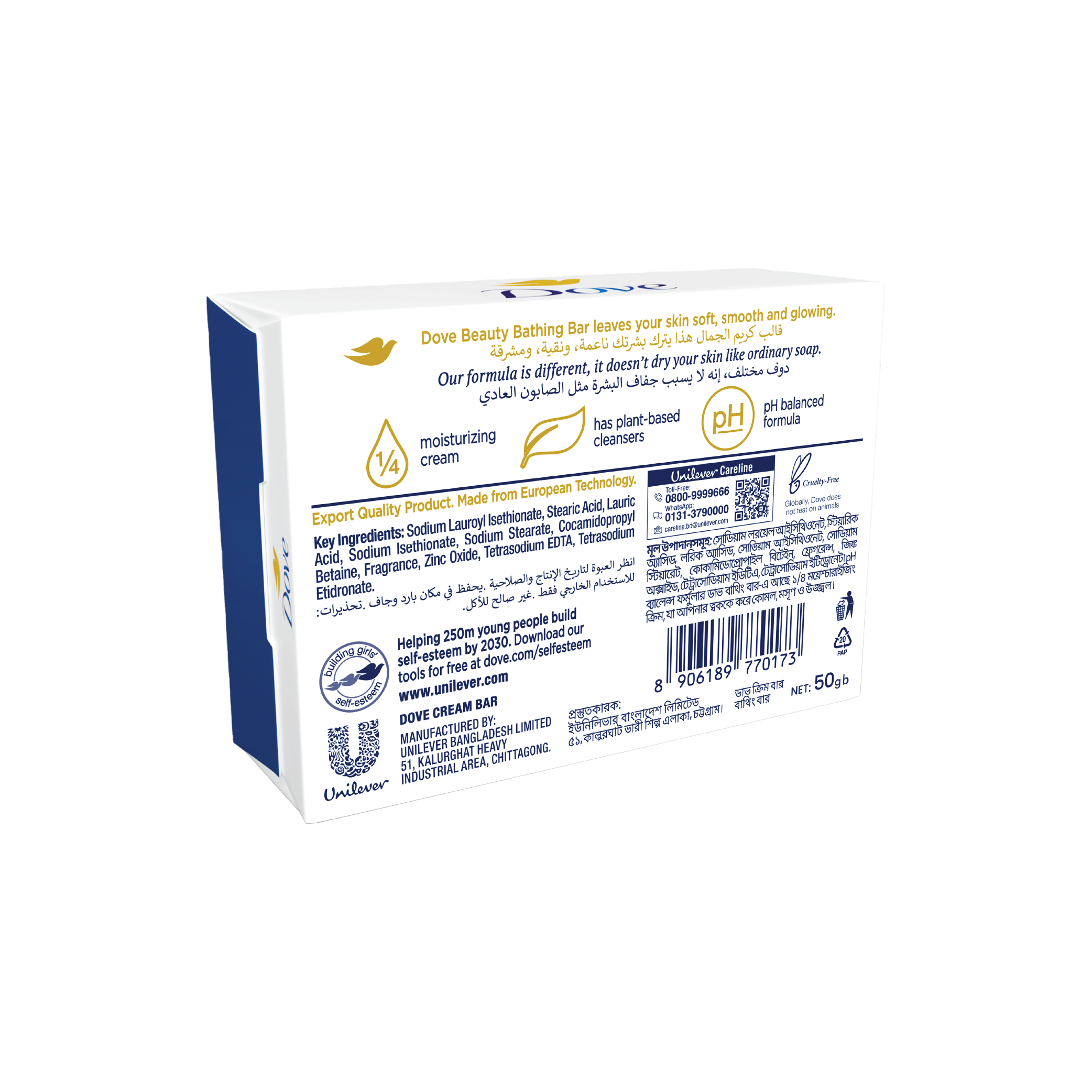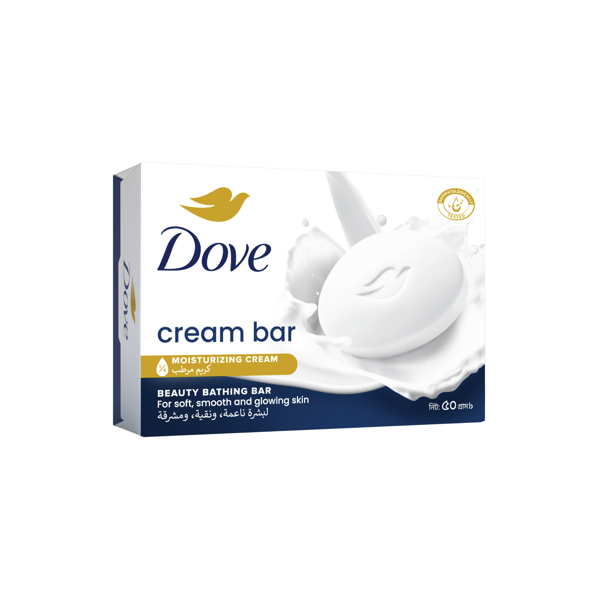 DOVE White Beauty Bar combines a gentle cleansing formula with DOVE’s signature ¼ moisturizing cream to give you softer, smoother and more glowing skin. The mild cleansers help your skin to retain its natural moisture rather than stripping it away. This DOVE bar even helps to replenish nutrients that are lost during the cleansing process – where a regular soap bar might leave your skin feeling dry and tight, a DOVE White Bar leaves it feeling soft and smooth. It’s not a soap – it’s a beauty bar Washing with regular soap can cause skin to feel dry, tight and irritated as some cleansing ingredients strip skin of essential nutrients. What makes DOVE different? Its gentle cleansers help your skin retain its natural moisture and its mild formula is kind to your skin. DOVE is the No.1 Brand recommended by dermatologists in India. For best results, lather up your DOVE Beauty Bar and massage the smooth, creamy lather over your face and body before rinsing thoroughly. For soft, smooth hands, you can also enjoy regular hand-washing throughout the day with your DOVE bar. Soap may dry out your hands, but the classic moisturizing formula of DOVE bars will leave skin softer, smoother and more glowing.