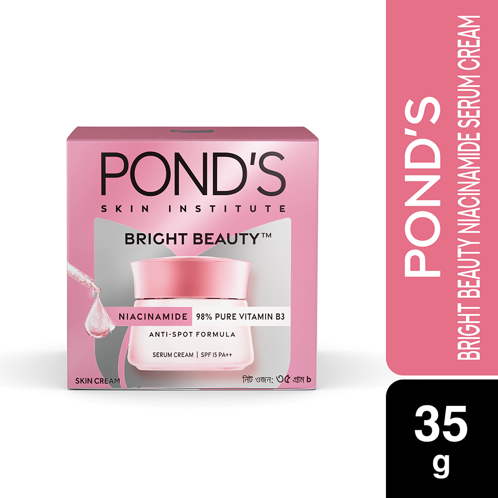 Make your skin look its best with Pond's Bright Beauty Serum Cream . This cream is designed to provide you multifaceted benefits. It not only makes your skin look lighter but also reduces dark spots. You can make your skin look radiant and bright with the regular use of this cream that is has SPF 15 to protect the skin against the harmful effects of UV rays. Now, you can nourish and protect your skin at the same time. This cream is suitable for daily use as it is effective yet gentle. Get your dream skin in a convenient way with the help ofPond's Bright Beauty Serum . Buy Now!